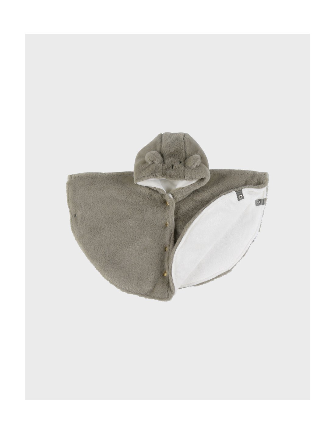 Plongez votre petit trésor dans un nuage de tendresse avec ce poncho en bunny hair kaki, doublé de sherpa tout doux. Sa capuche coiffée de petites oreilles de lapin apporte une note espiègle à chaque sortie, tandis que les élégants boutons en bois sur le devant lui confèrent un charme naturel. Les deux boutons-pression latéraux assurent un maintien parfait, pour que bébé reste bien au chaud sans jamais être gêné dans ses mouvements.