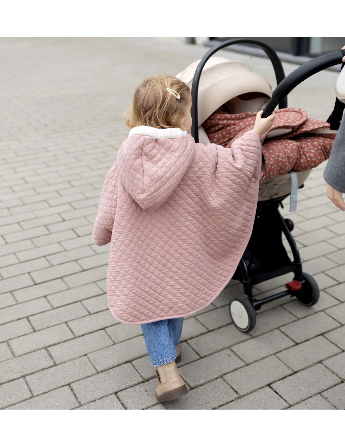 Bien chaud et très pratique, le poncho est le manteau idéal pour balader en poussette, voyager en voiture et dans le porte bébé.