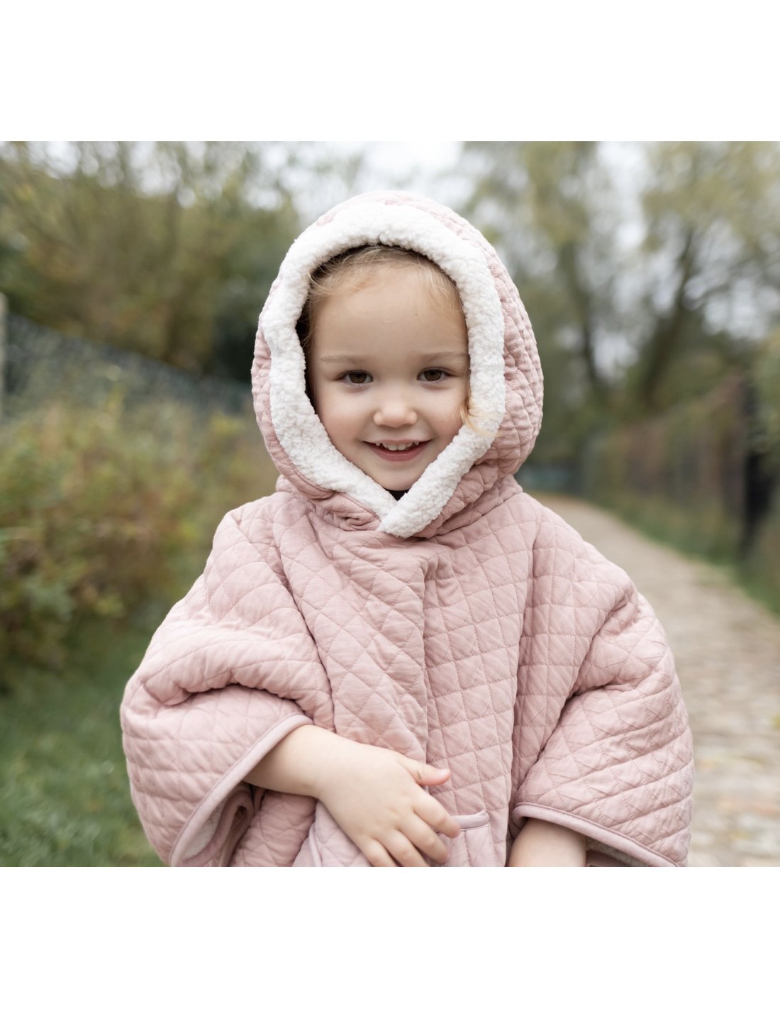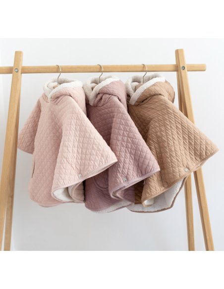 Matelassé, ouatiné et doublé de teddy le poncho procure une chaleur agréable et un confort optimal.