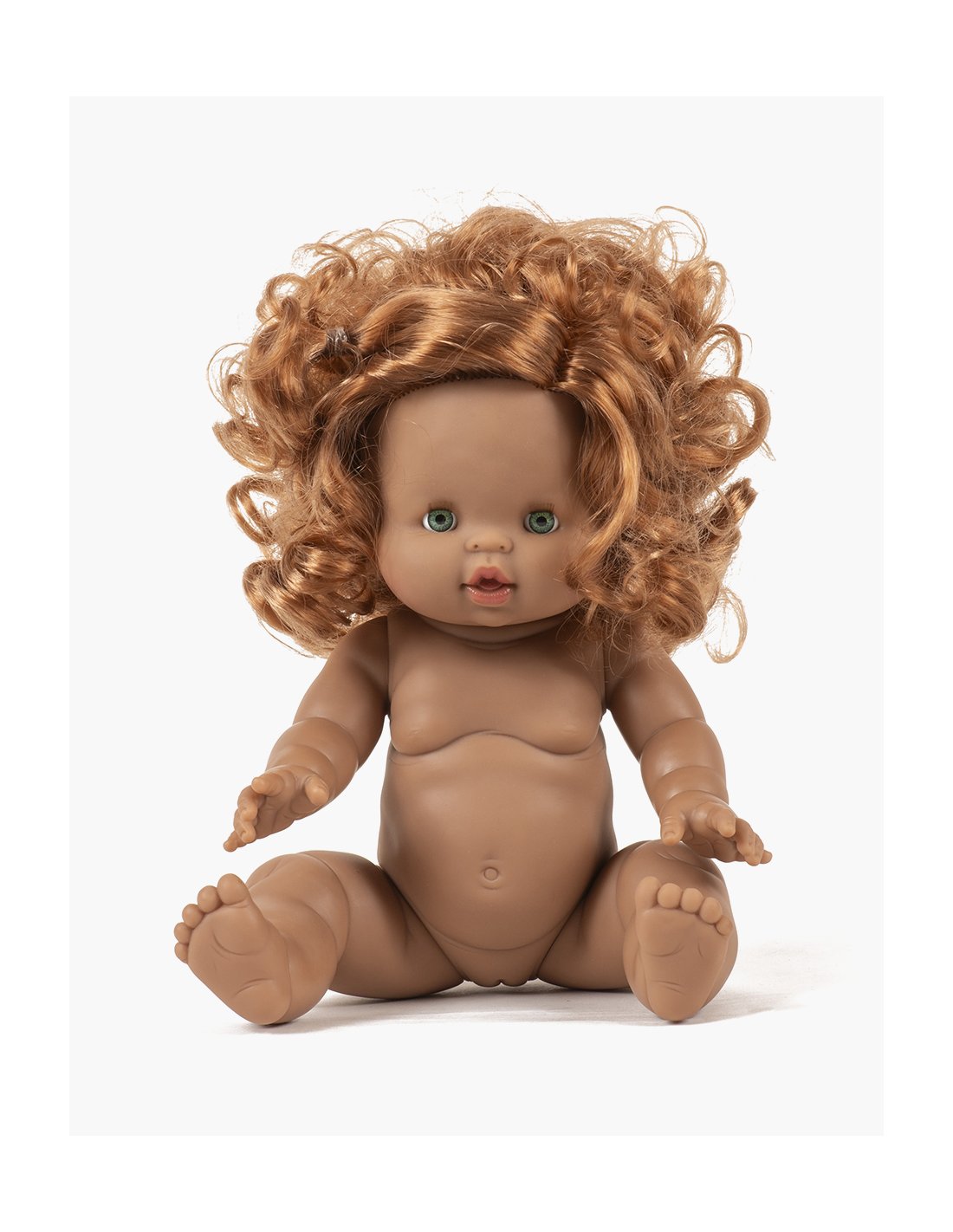 Poupée en vinyle à cheveux avec frange et parfumée à la vanille.