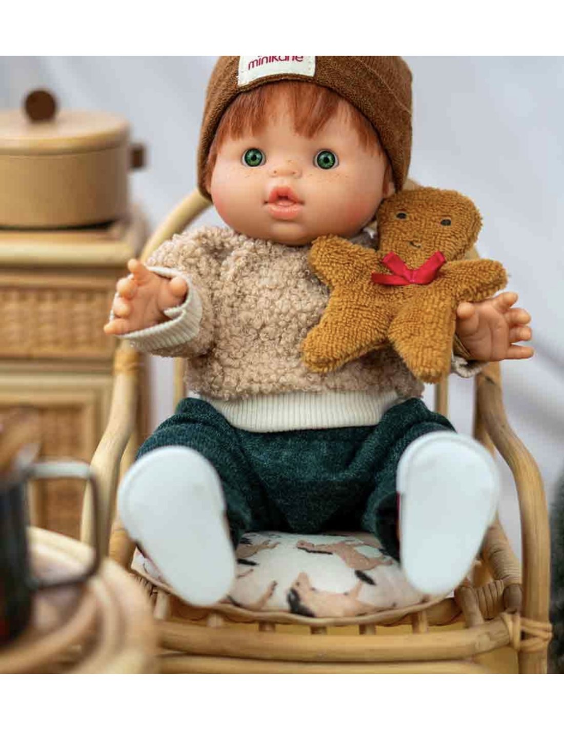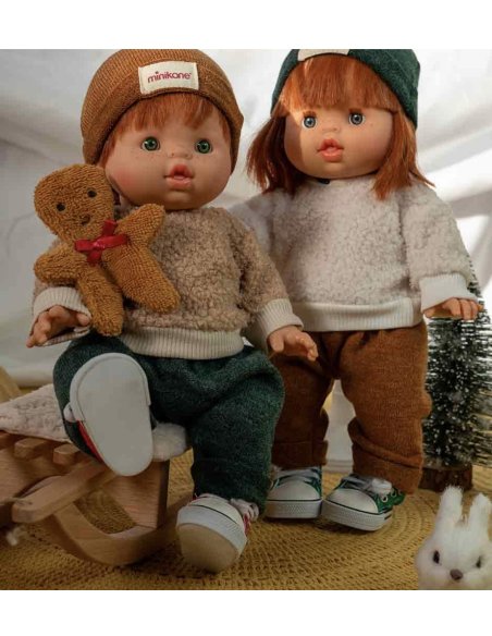 Ensemble 3 pièces « Bonhomme Pain d’épices » avec doudou pour poupées et poupons Minikane Gordis 34 & 37cm.