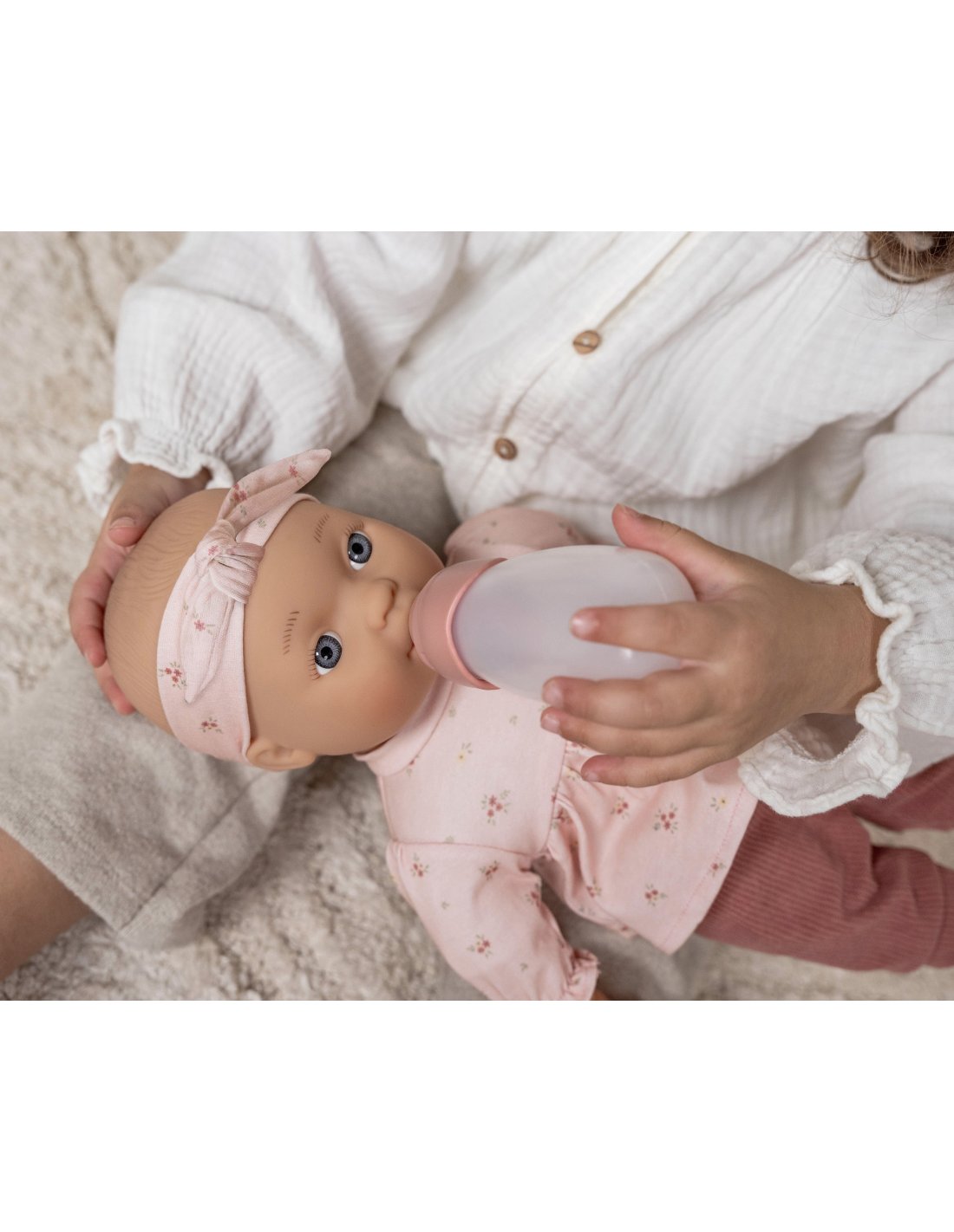 Fais la connaissance du bébé Lily. Fais-lui un câlin et prends soin d'elle. La gentille Lily est une poupée adorable et réaliste au visage doux et câlin, qui saura conquérir ton cœur. Tu peux changer ses vêtements, l'aider à s'endormir et la calmer avec sa tétine. Quand elle a faim, donne-lui la bouteille de lait. Les enfants aiment imiter tout ce que font leurs parents, et cette poupée bébé inspirera votre enfant à jouer le rôle de soignant. Lily porte un bandeau et une robe à manches longues dans le motif Rosy Meadows au-dessus d'un pantalon côtelé. Le fait de changer ses vêtements favorise les capacités de motricité fine, et la tétine et la bouteille de lait ajoutent un élément interactif au jeu.