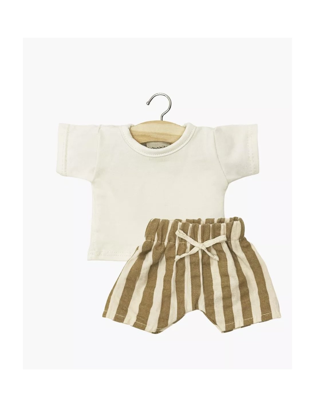 Ensemble vêtements avec top t-shirt manches courtes en jersey et short Vito en coton pour poupées et poupons Minikane Gordis 34 & 37cm.