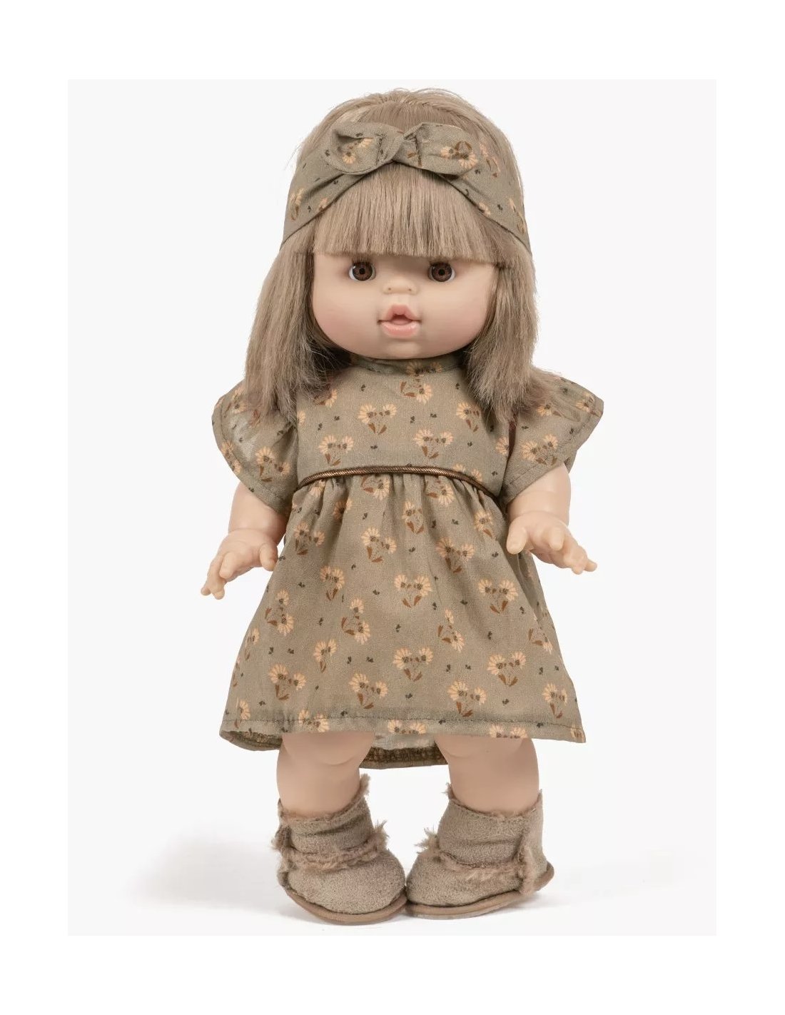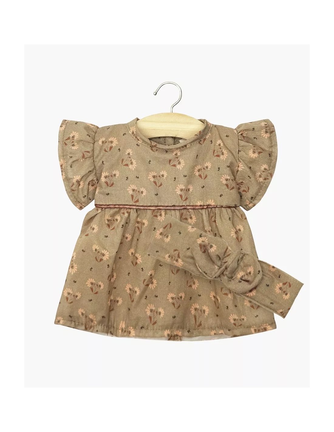 Robe Daisy et son headband à noeud rond en coton imprimé avec passepoil pour poupées Minikane Gordis 34 & 37cm.