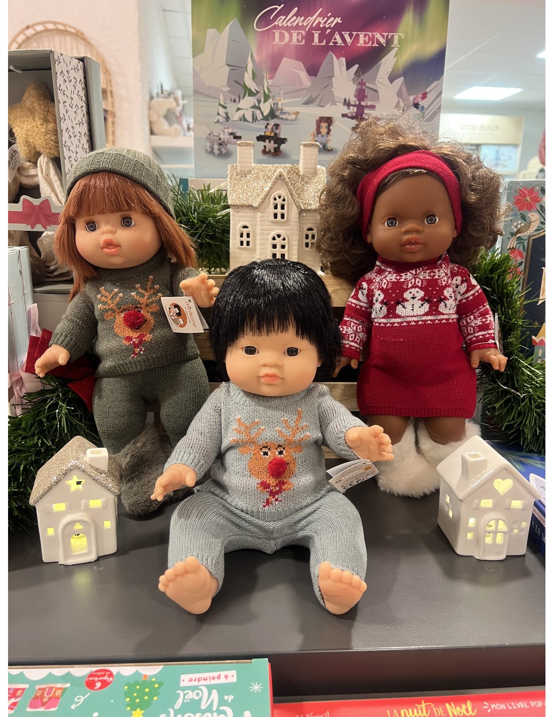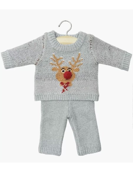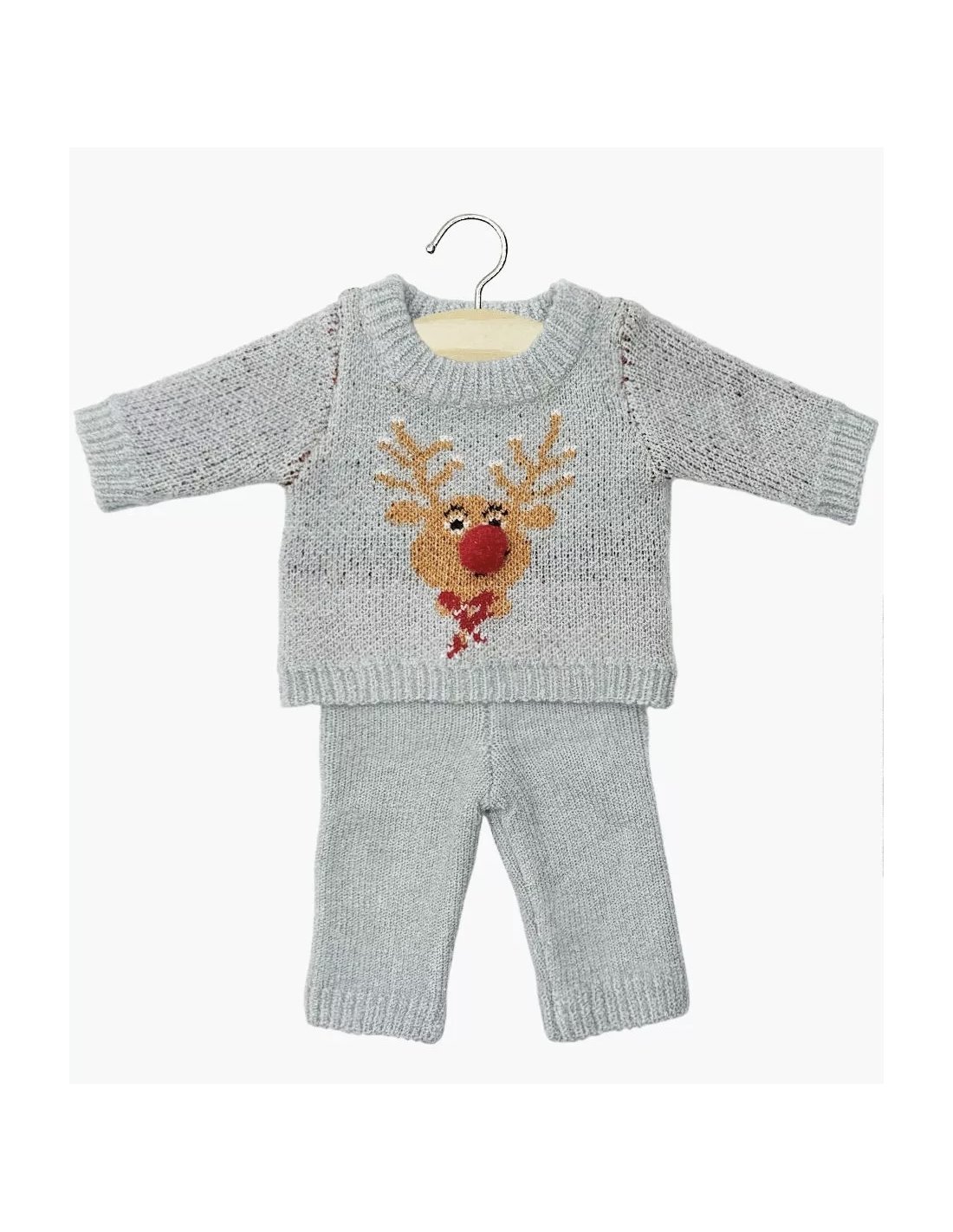 Ensemble 2 pièces mixte en tricot Petit renne pour poupées et poupons Minikane Gordis 34 & 37cm, Cuties 36cm et Babies 28cm.