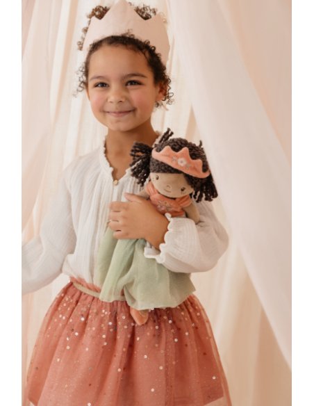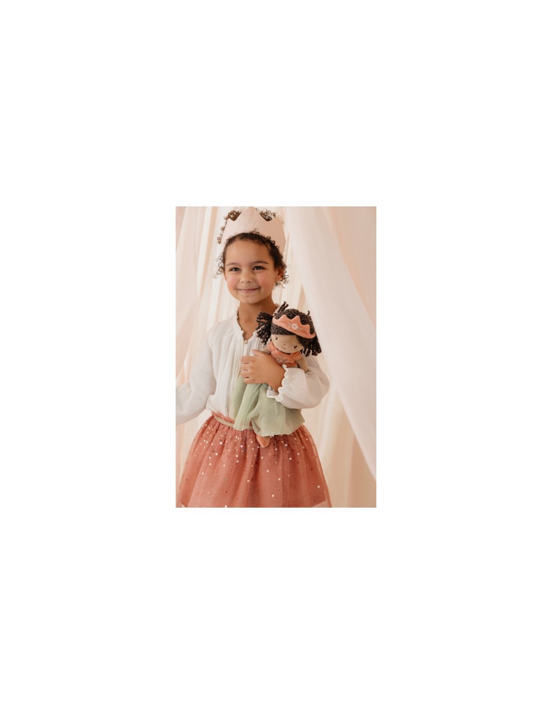 Voici la princesse Evi, une peluche toute douce au look royal ! Avec ses boucles foncées, sa robe brodée et sa petite couronne, elle invite aux câlins et aux jeux imaginatifs. Evi deviendra vite d'une adorable compagnie pour toutes les aventures !