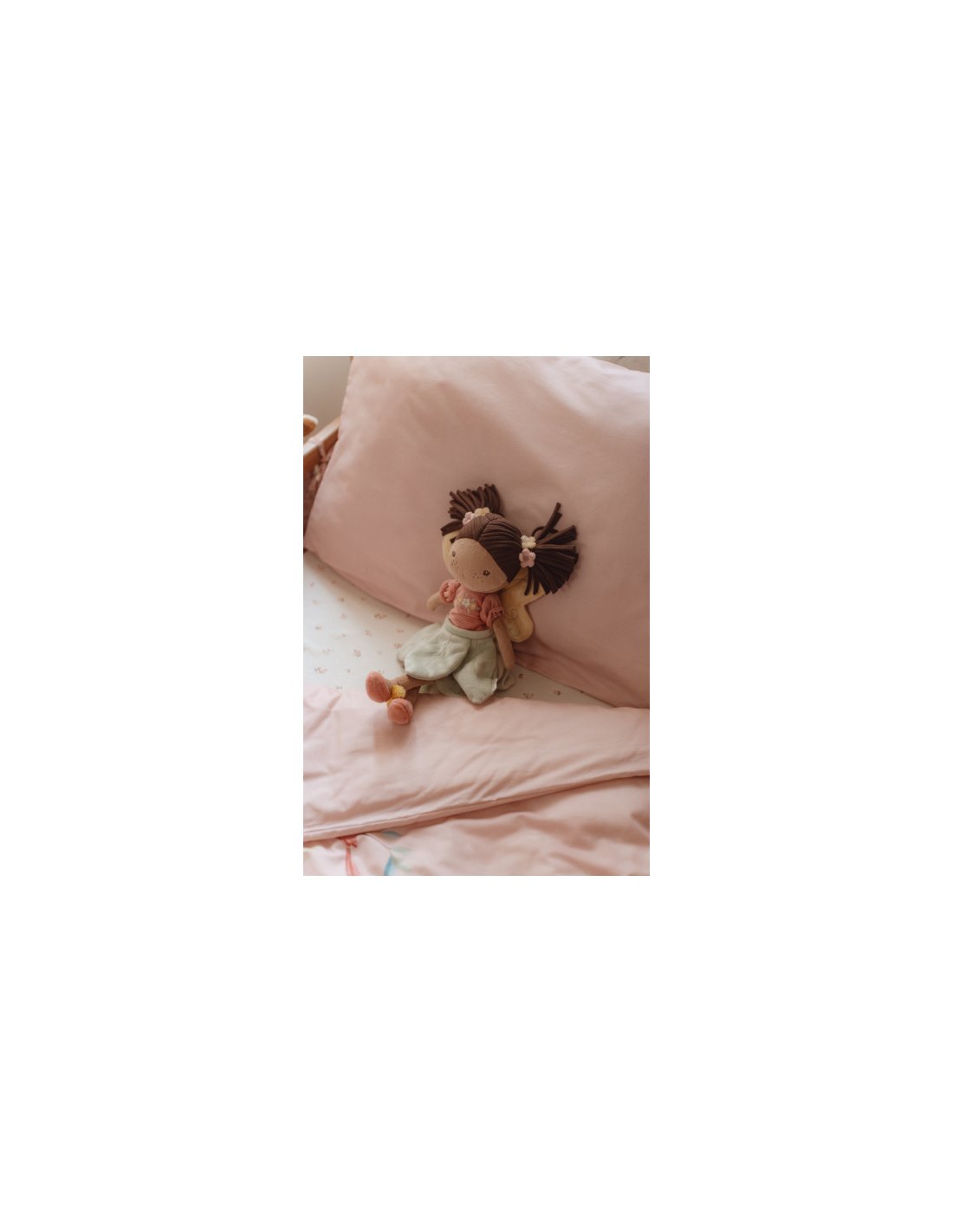 Voici Evi, une douce poupée en peluche qui deviendra vite une amie précieuse. Avec son corps moelleux, sa jupe fleurie et sa jolie coiffrure, elle invite aux câlins et aux jeux partagés. Fabriquée en matière toute douce, Evi est facile à emporter partout pour vivre de tendres aventures.