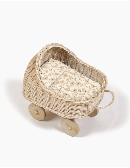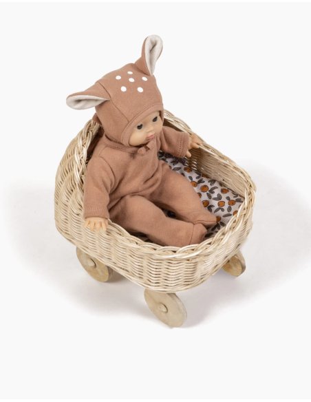 Mini Berceau Ambon en bambou et rotin et sa garniture en coton pour poupées Minikane Babies 28cm.