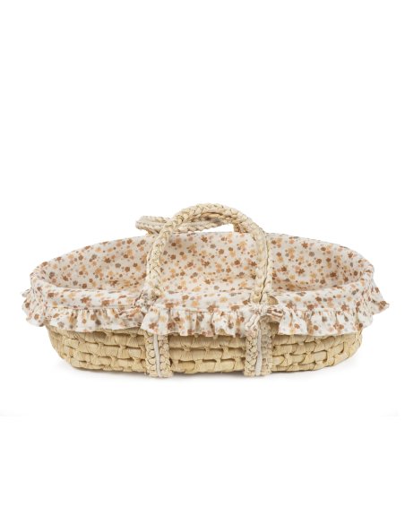 Couffin moïse en osier avec imprimé floral.