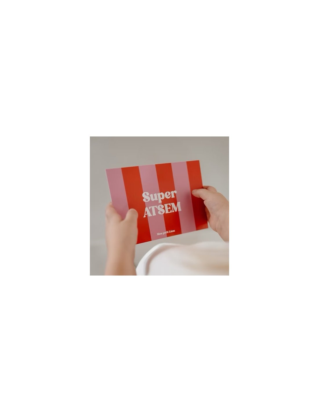 Carte A6 SUPER ATSEM rayures rose rouge