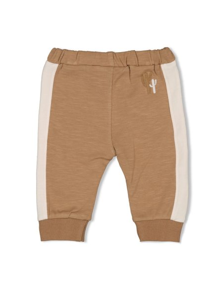 Pantalon bébé garçon camel avec bande écru les les faces latérales.