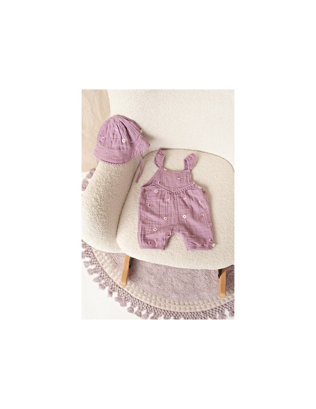Joli bob en mousseline de coton, pour compléter la tenue de bébé. Avec petites cordelettes pour attacher sous le menton.