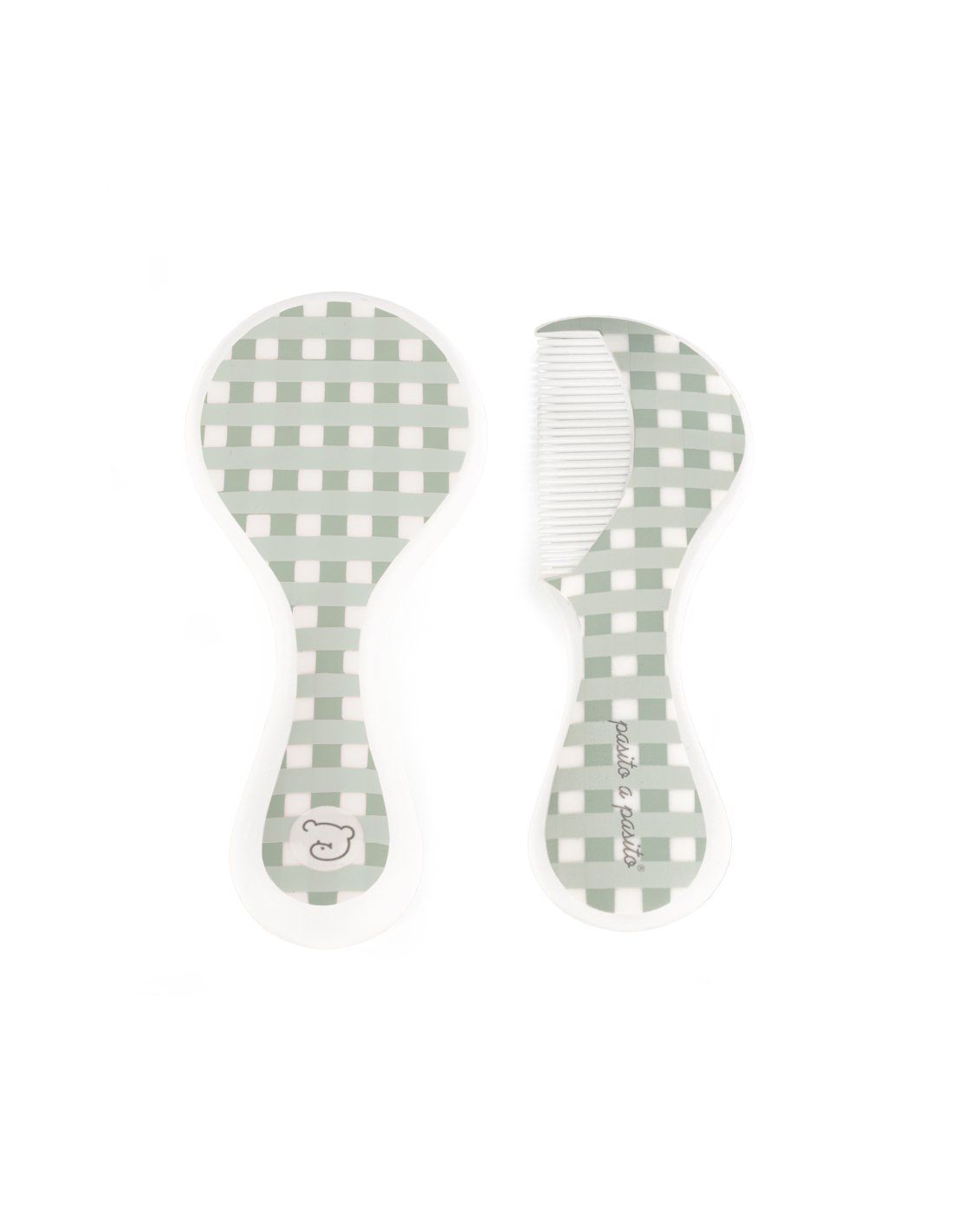 Ensemble brosse et peigne adapté aux soins de bébé.