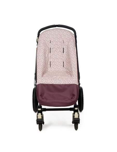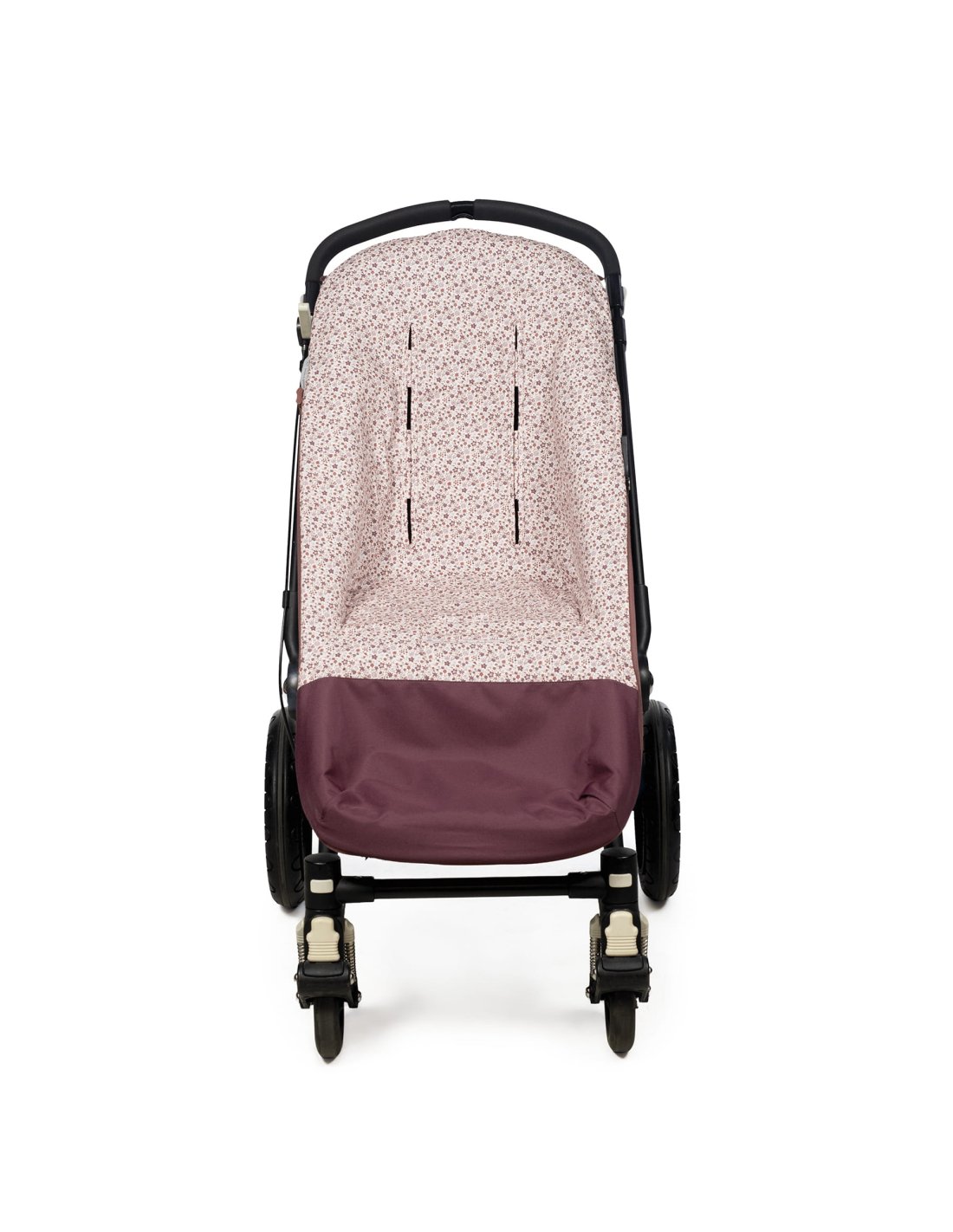 Housse Cherry Fleurs de Pasito a pasito en tissu 100 % coton très doux, idéale pour recouvrir la poussette équipée d’une chancelière. Elle est conçue au niveau du dossier avec une couche de tissu respirant qui isole de l’humidité et évite la transpiration excessive du bébé, rendant la promenade plus confortable.