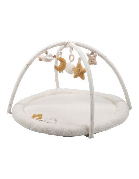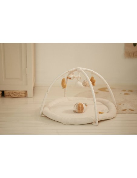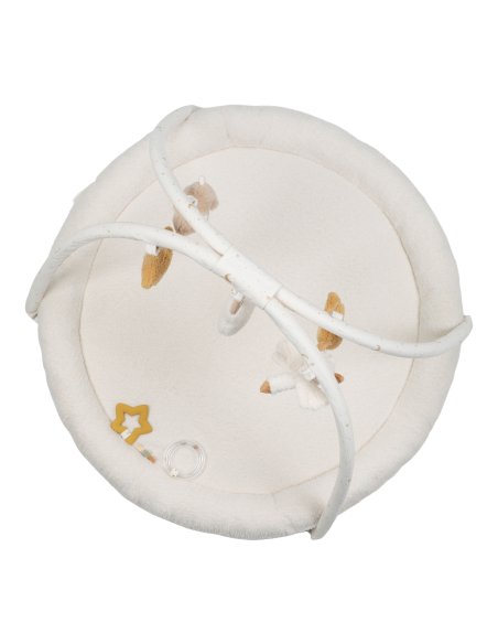 Laissez votre petit explorer le tapis d'activités. Ce tapis doux et confortable crée un espace de jeu sûr avec différentes textures, des sons froissés et des détails ludiques qui stimulent les sens. Parfait pour les premières découvertes ! Les tons neutres et naturels s'intègrent parfaitement à toute chambre d'enfant, tandis que les textures et les sons variés renforcent le plaisir. Un endroit douillet pour jouer, sentir et grandir. Pour les petits explorateurs aux grands rêves !