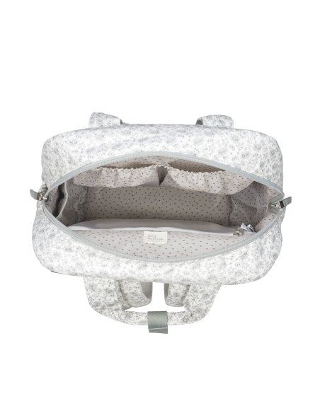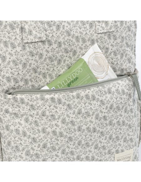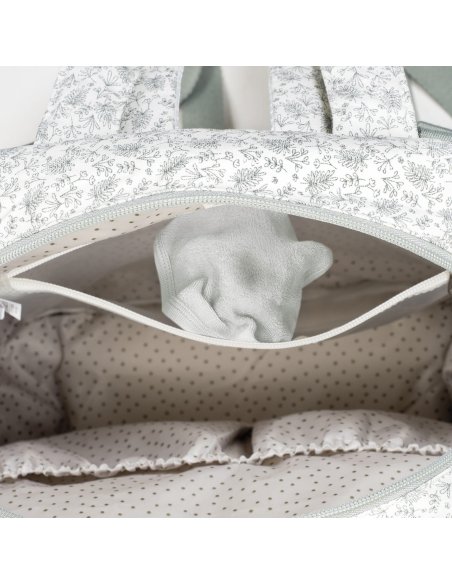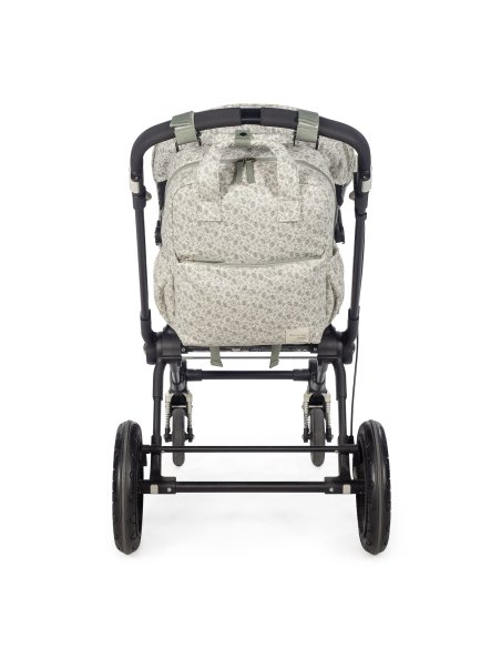 Le sac à dos idéal pour transporter vos affaires et celles de bébé avec style lors de toutes vos sorties. Le sac à dos Gala Mint à imprimé floral est confectionné en coton 100 % imperméable. Ce sac à dos multifonctionnel pour poussette est léger, résistant et suffisamment spacieux pour emporter tout le nécessaire pour vos promenades avec bébé. Sa structure offre trois poches extérieures et quatre poches intérieures pour une organisation optimale et un accès facile à toutes vos affaires. À l'extérieur, il dispose d'une poche avant zippée et de deux poches latérales pour les biberons. À l'intérieur, on trouve une poche doublée de plastique pour les vêtements mouillés, une poche isotherme pour biberon et deux poches pour les petits objets à portée de main. Un matelas à langer assorti au sac de maternité est inclus. Le sac est équipé de deux poignées courtes et réglables permettant de l'attacher facilement à n'importe quelle poussette, ainsi que de poignées et de bretelles rembourrées pour un confort de portage optimal.