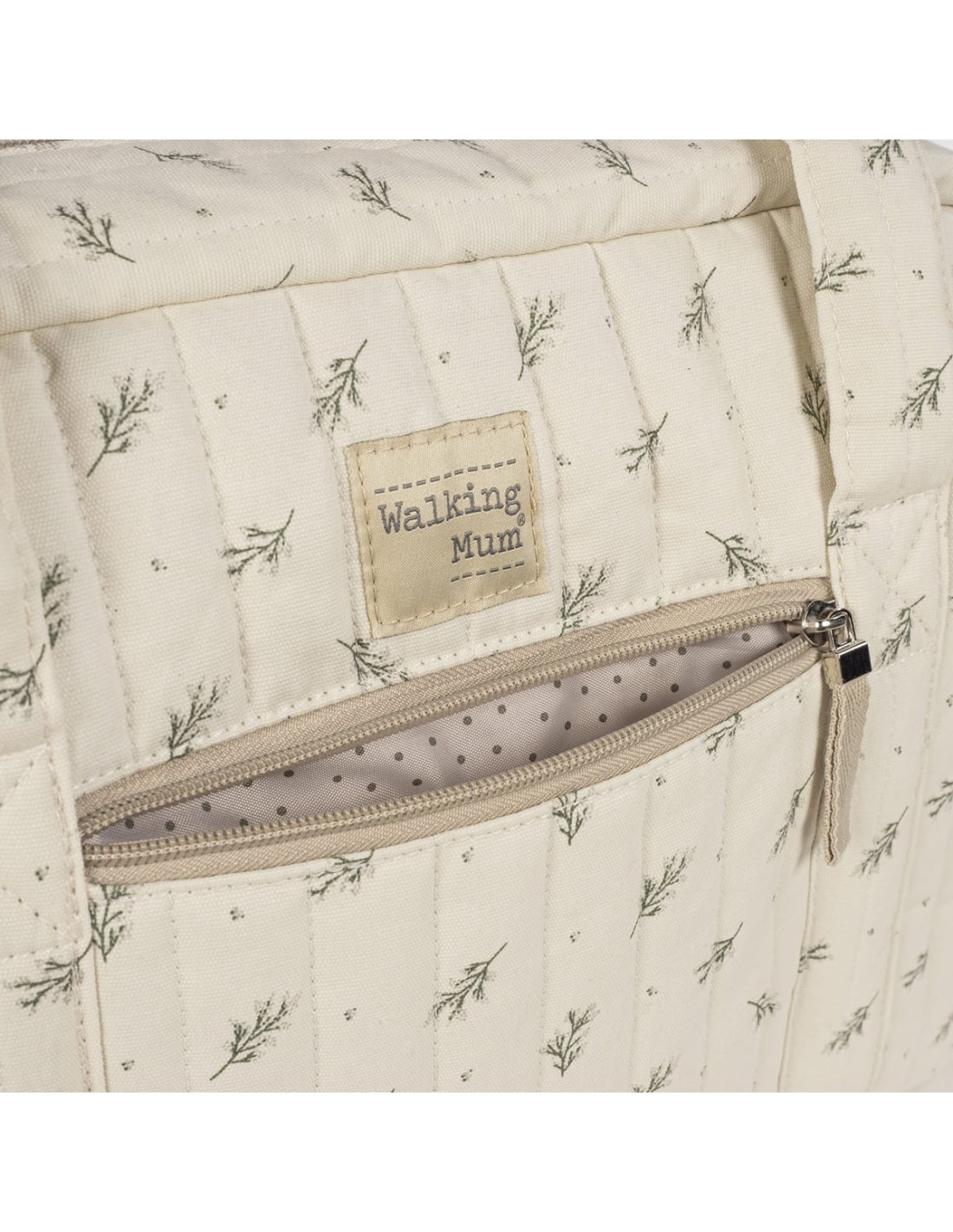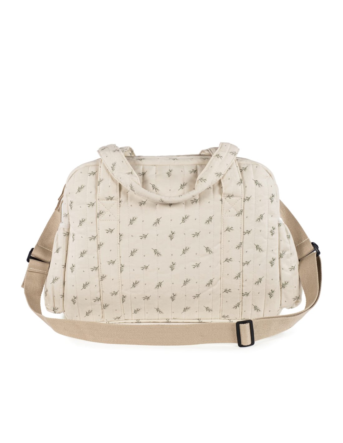 Le sac à langer Mimosa Rose avec impression florale pour poussettes est livré avec un tapis à langer pour votre bébé.
