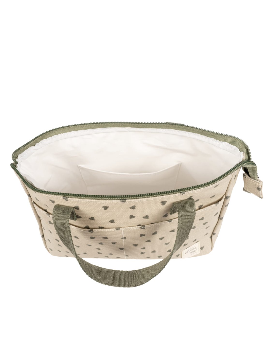 Le sac de toilette pour bébé Poppy Cannelle imprimé coeur est un sac spécialement conçu pour transporter tous les articles de toilette de bébé.