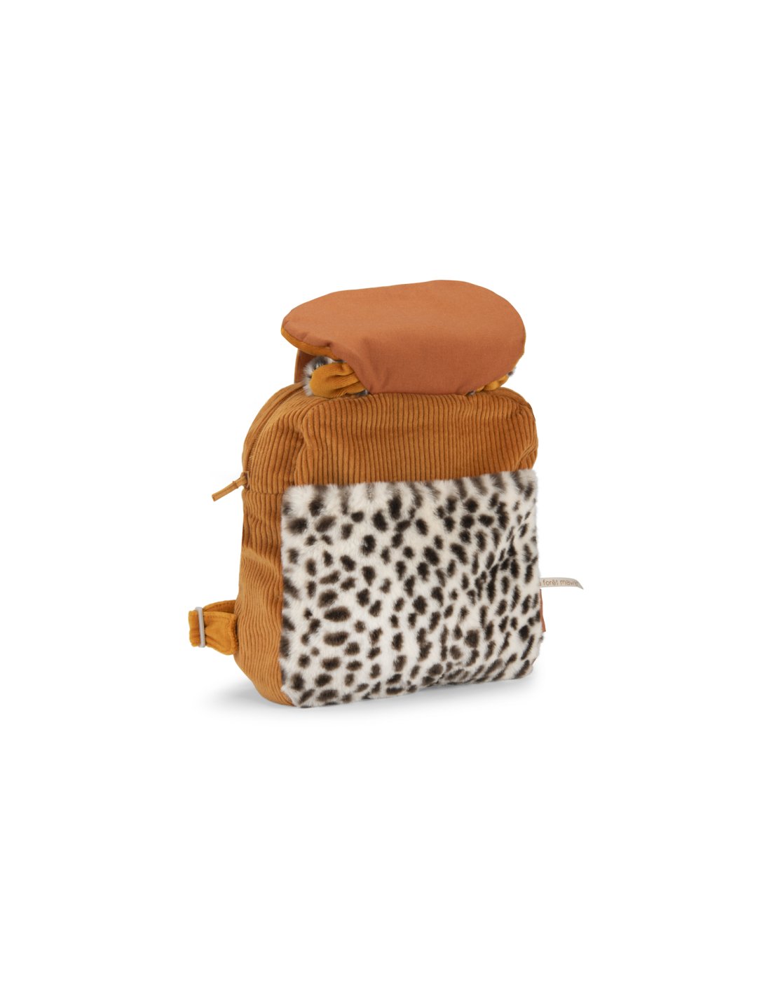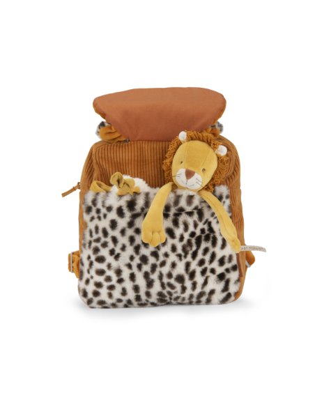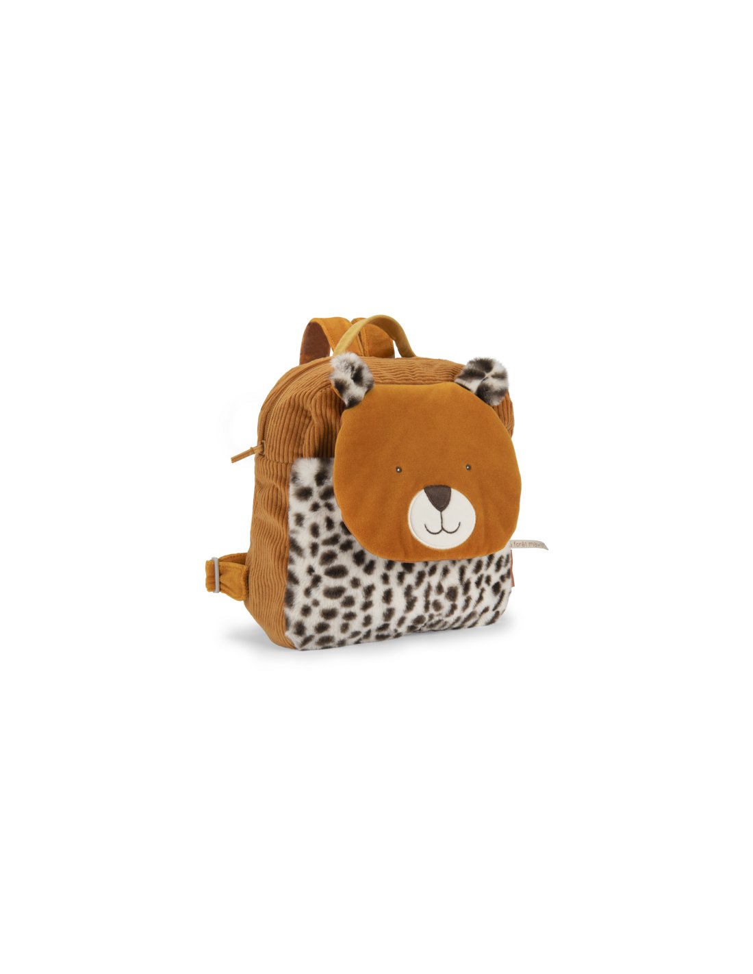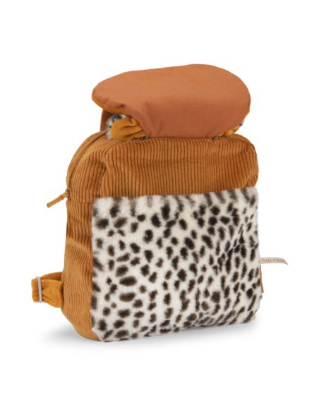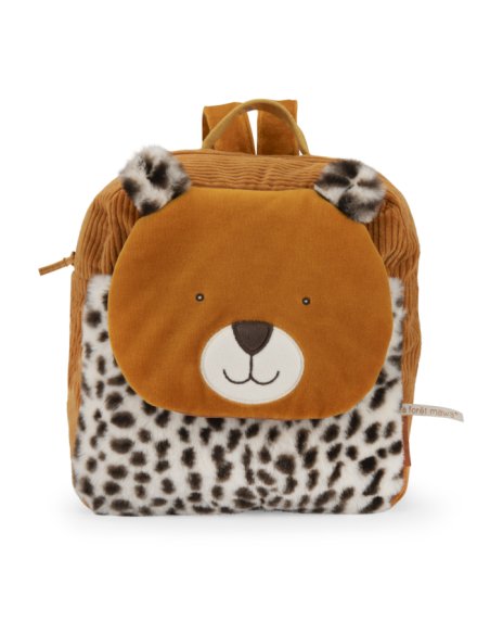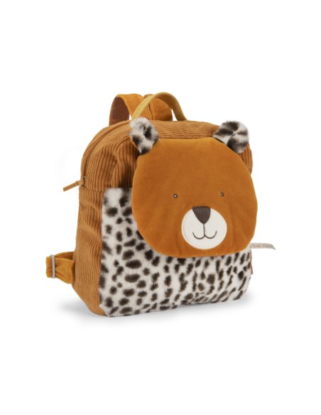 En velours côtelé et en fourrure, Taïgo le léopard se transforme en un sac à dos pratique grâce à sa poche avant plaquée, sa fermeture à zip et ses bretelles réglables. Muni d'un crochet porte-manteau, il sera idéal pour les premières sorties. Brodable.