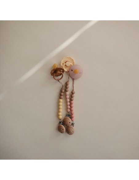 La tétine FRIGG Daisy, pleine de charme, est disponible en monochrome et en couleurs mélangées.
